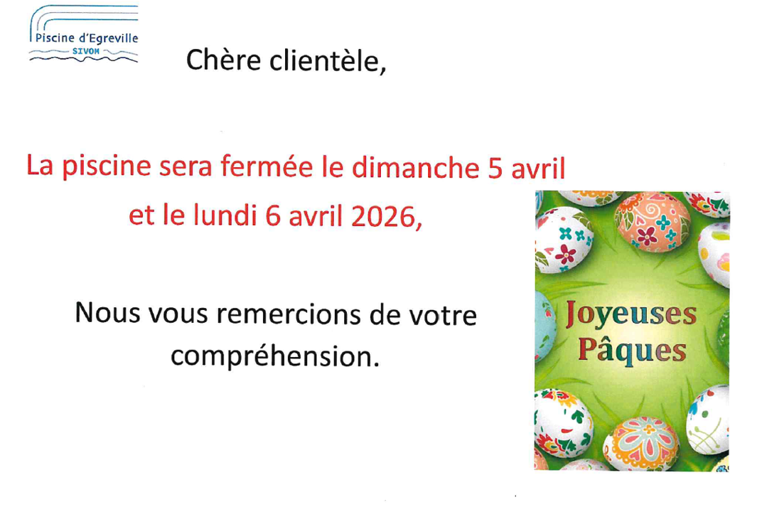 PISCINE D’EGREVILLE – 5 et 6 AVRIL 2026