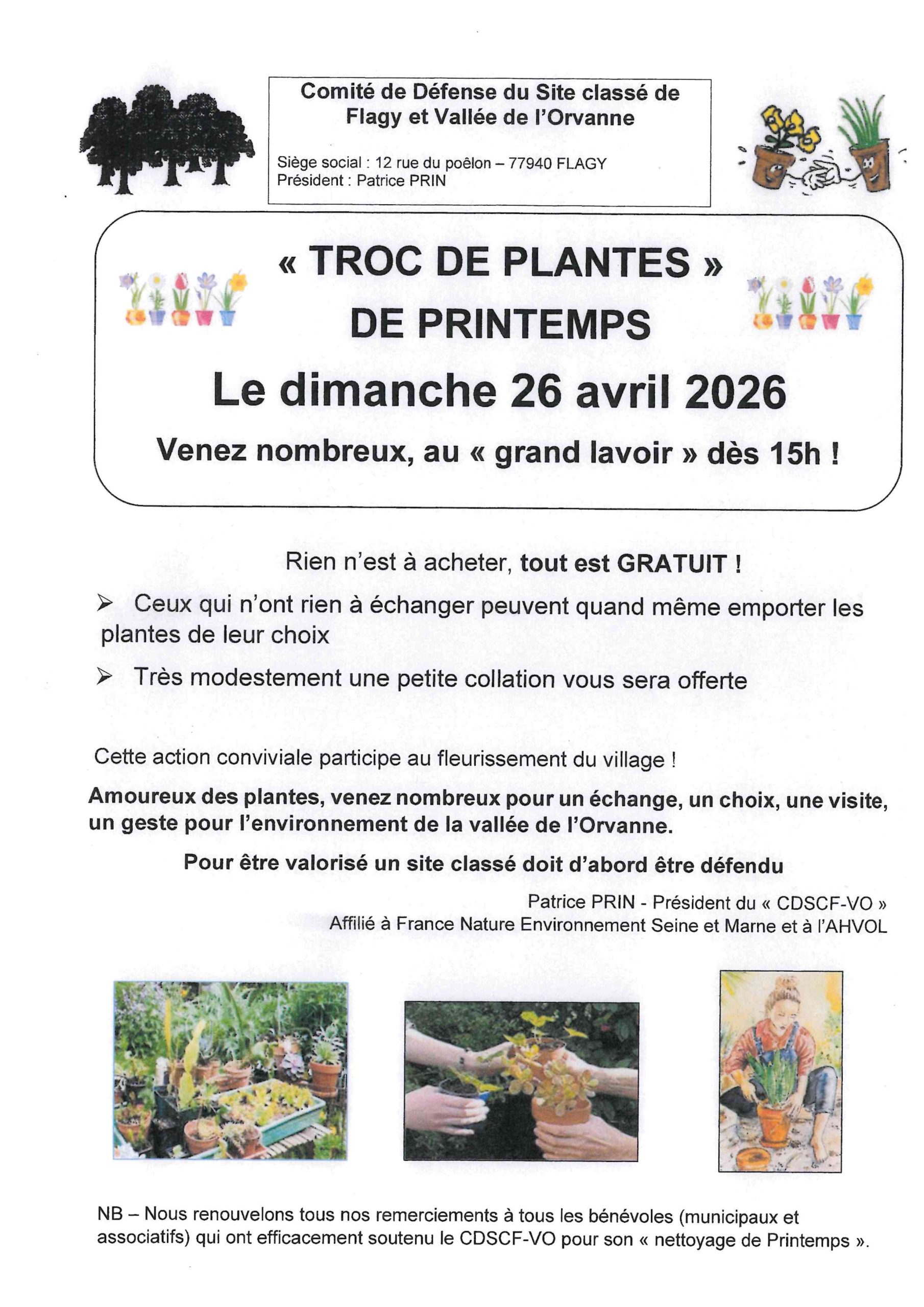 TROC DE PLANTES – 26 AVRIL – FLAGY